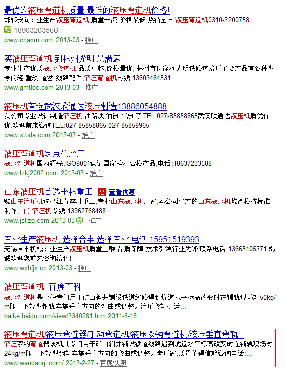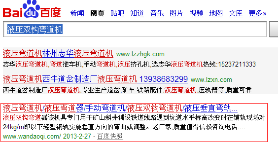 液壓彎道機關鍵字百度排名
