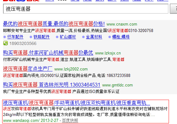 液壓彎道器關鍵字百度排名