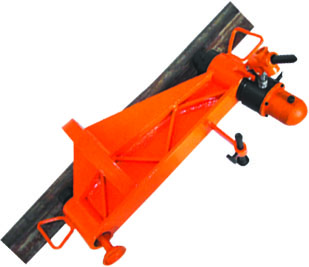 操作液壓彎軌機前,先擰緊卸載閥將液壓彎軌器彎鉤鉤住鋼軌,活塞頂頭頂住鋼軌,再轉(zhuǎn)動液壓彎軌機絲桿手輪,即可將液壓彎軌機卡緊在鋼軌上。